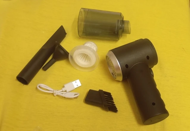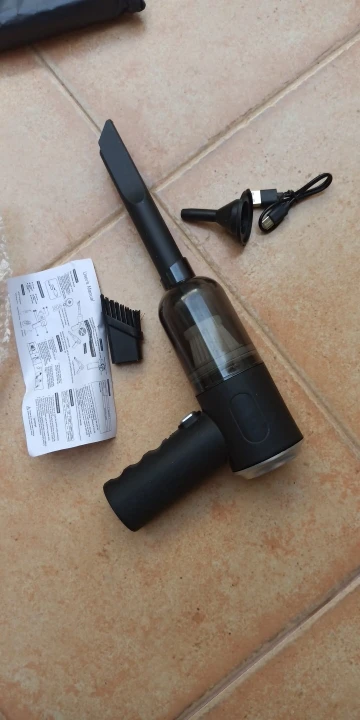 Gil Lowe The product matches the description. A small vacuum cleaner. Size approximately 18 cm. I checked it works. Charges via USB cable. Of course, it has little suction power, but what can you expect for this price. Odorless plastic. Delivery 10 days to Germany.